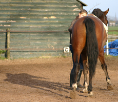 Sinds eind augustus is Saartje weer aan het werk na een periode van 5 maanden zwangerschapsverlof. Saartje kende alleen stap, draf en galop. Voor haar verlof is ze 3 weken volgens de academische rijkunst getraind en leerde zij de schouderbinnenwaarts en travers aan de hand. Saartje was erg blij dat ze weer aan het werk mocht en pakte de oefeningen zeer goed op. Ze kent nu alle zijgangen aan de hand en onder de man. Saartje is enorm fanatiek en wil na het werk de rijbak niet uit in de hoop dat we nog wat oefeningen gaan doen waarmee ze brokjes kan verdienen!